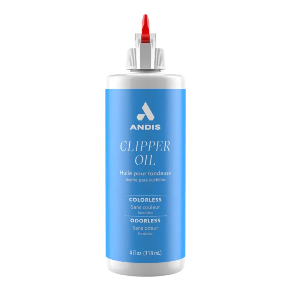 Andis Aceite 4 oz (118 ml) es un lubricante profesional formulado para mantener las cuchillas de máquinas de corte en perfecto funcionamiento. Su aplicación regular reduce la fricción, evita el sobrecalentamiento y prolonga la vida útil de las herramientas, asegurando un corte más suave y preciso.